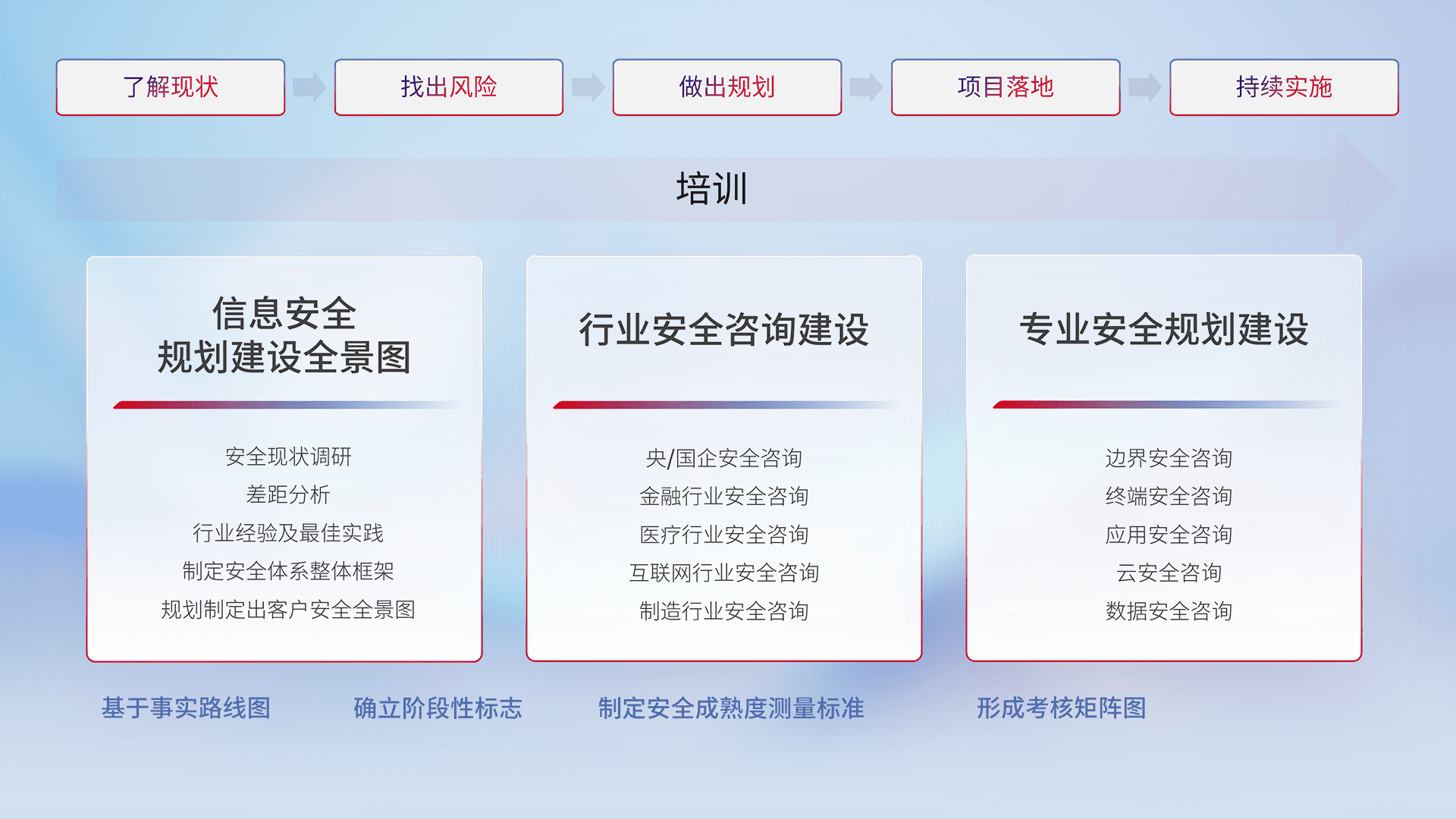 梳理客户信息安全现状调研、、差距分析结果,,结合行业先进经验及最佳实践,,制订客户的信息安全管控体系总结架构,,最终形成一个完整的客户信息安全规划与建设的全景图。。。。